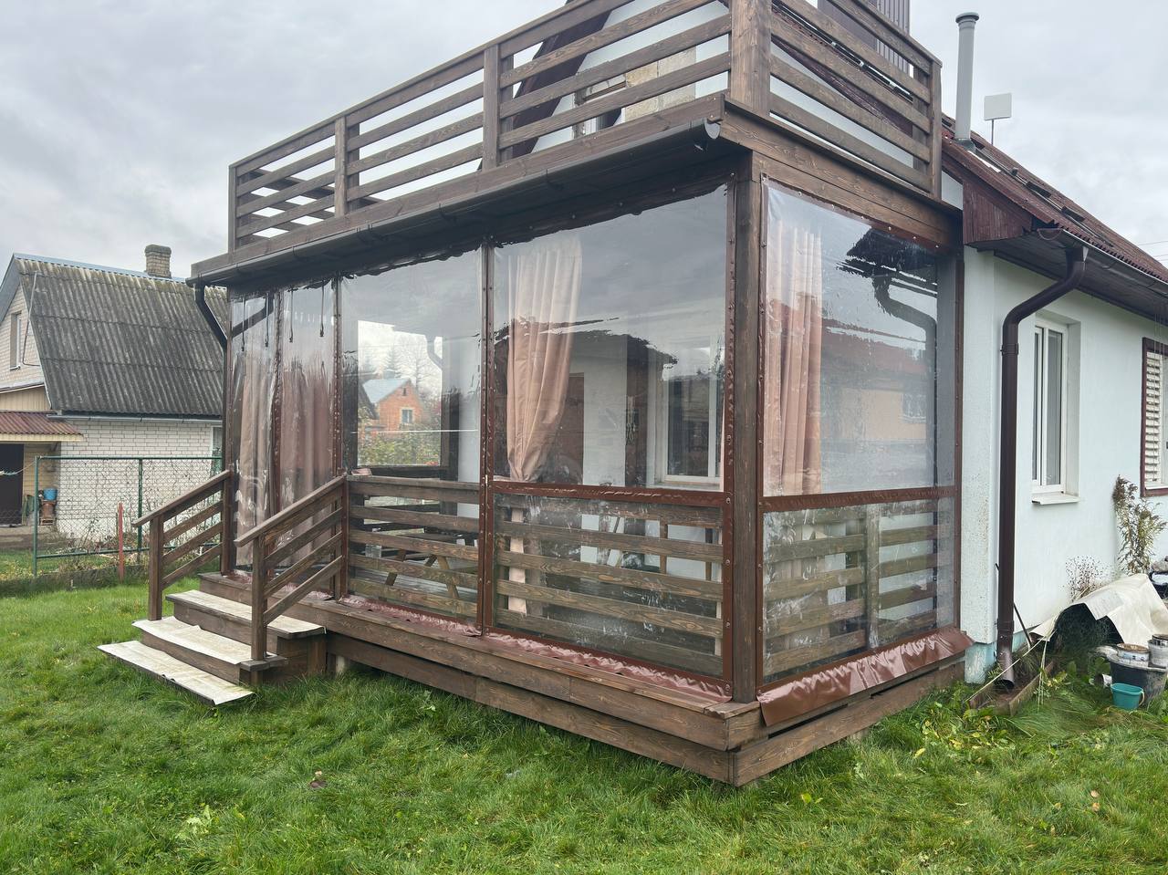 Используется как мягкое стекло для беседки, террасы, веранды, кафе . Не мутнеет, не трескается на морозе, легко монтируется все нужное для установки идет в комплекте .